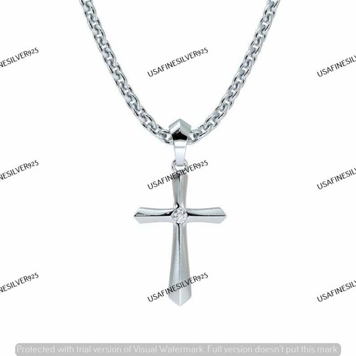 Moissanite Religious Cross Catholic Pendant Necklace Real 925 Sterling Silver