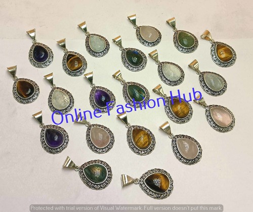 Moonstone,Tiger’s & Mix Gemstone Pendants Lot 925 Sterling Silver Plated Bulk