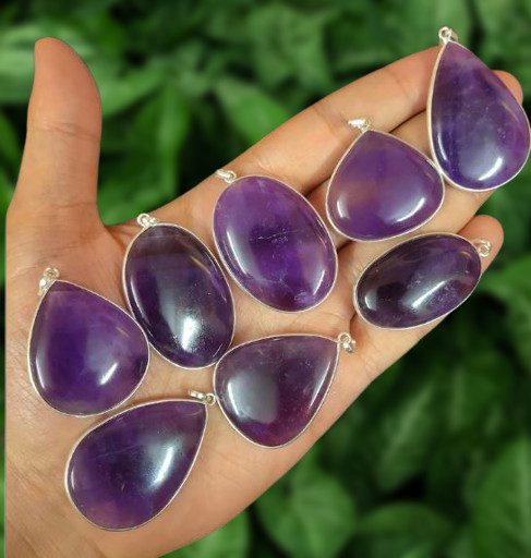 Natural Amethyst Gemstone 5PCS Pendants 925 Silver Plated Wholesale Lot Jewelry