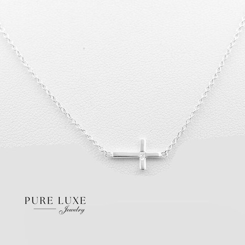 NEW Gift Inc Women Dainty Side 16 mm Cross Necklace 925 Sterling Silver + Box