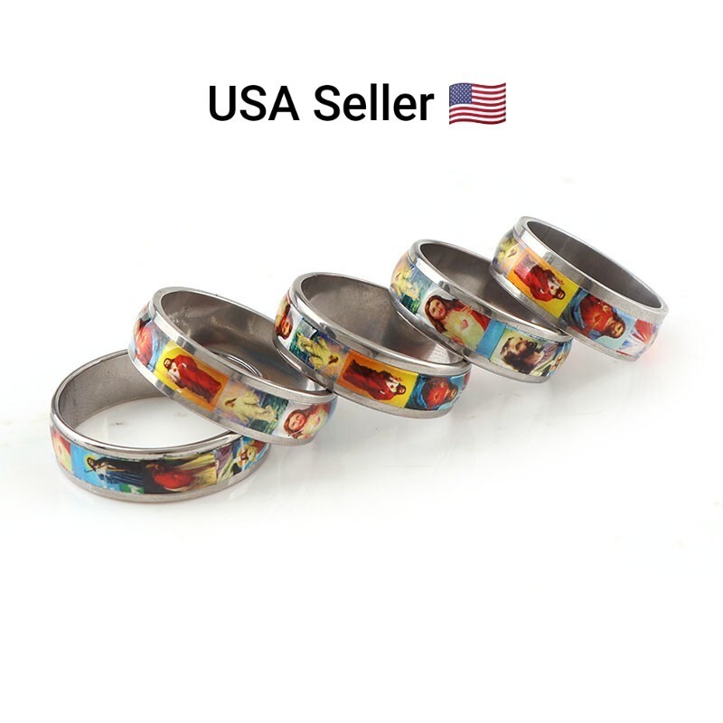 New Portrait of Jesus Stainless Steel Rings Prayer Ring Cross Jesus Christ Ring