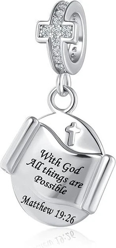 Pandora Cross Charm With God All Things Are Possible Bible Religious Dangle Bead