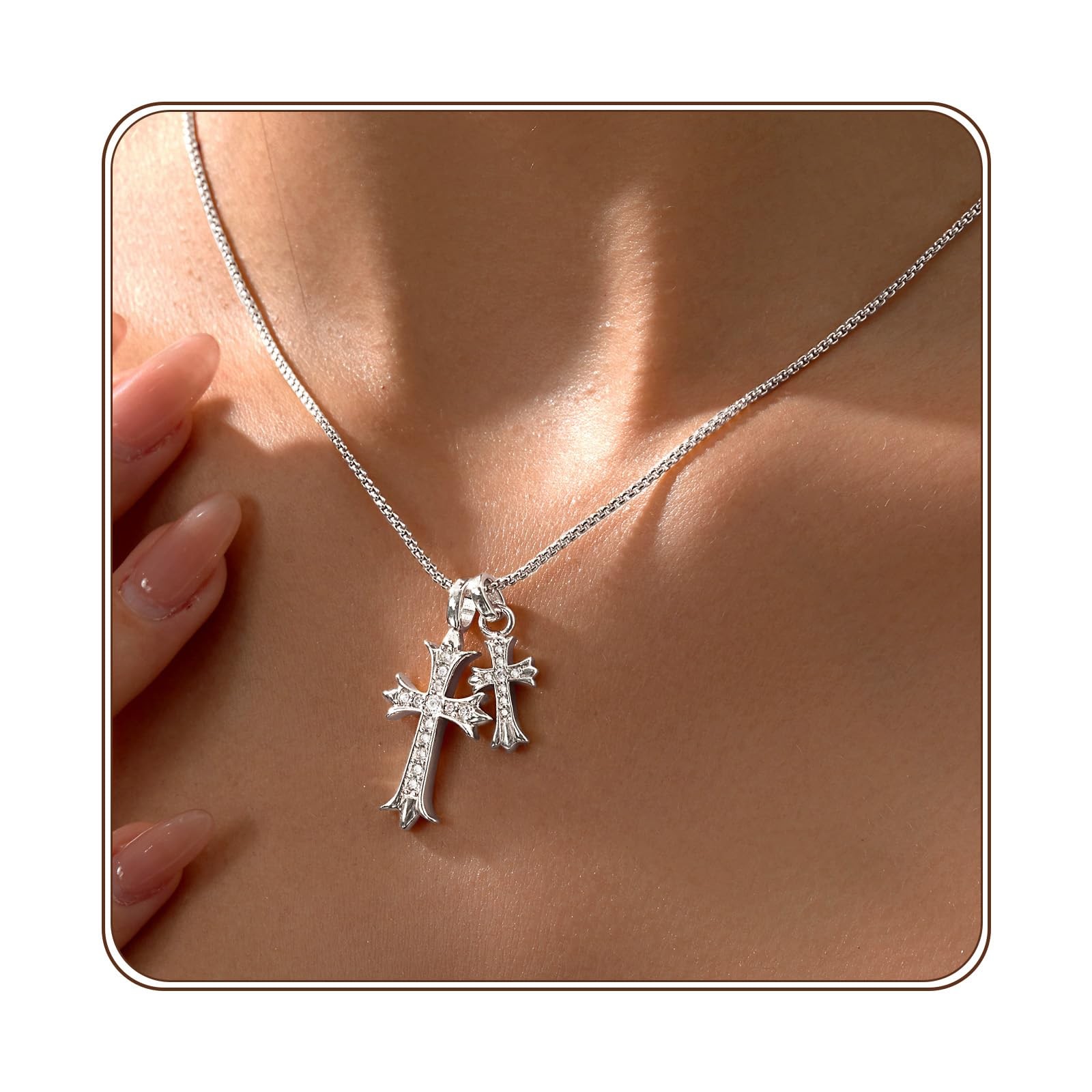 Partm Double Cross Necklace for Women 925 Silver Plated Dainty Cross Pendant …