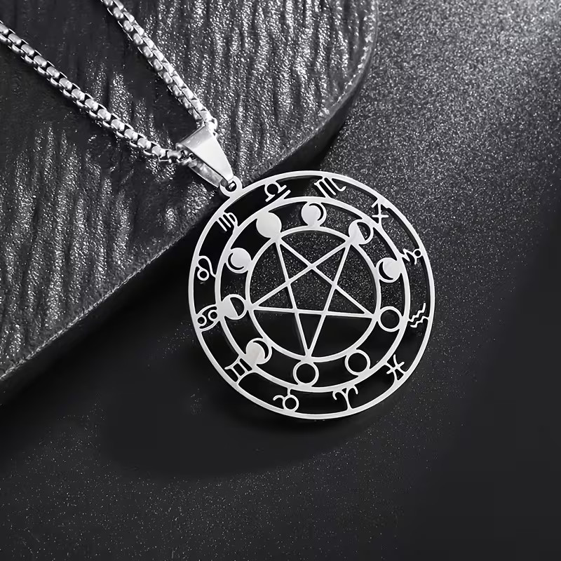 Pentagram Pentacle Star, Moon Phases Zodiac Pendant Necklace Wiccan, Pagan