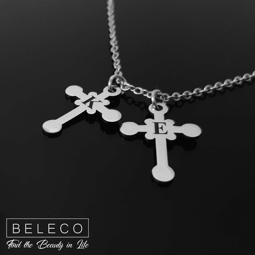 Personalized Cross with Initial Necklace Baptism Jewelry Custom Gift For Woman