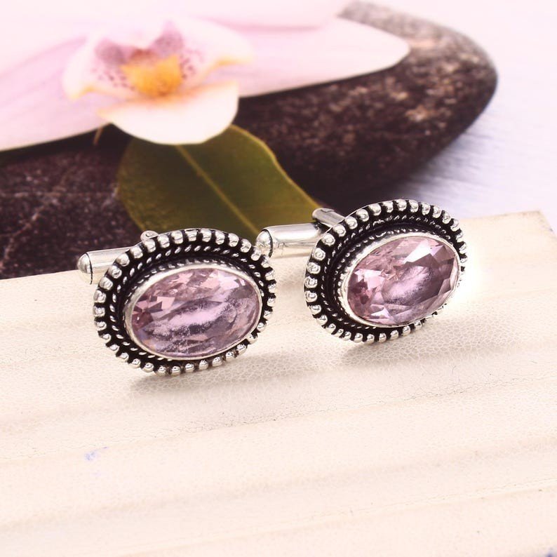 Pink Kunzite Gemstone 925 Sterling Silver Cufflinks Men And Women Cufflinks