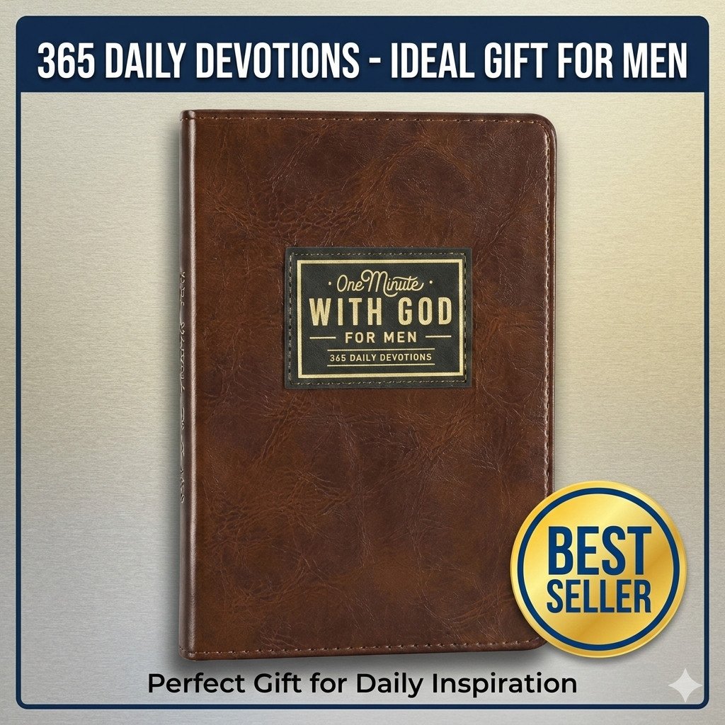 Men’s Daily Devotional Book One Minute with God 365 Days Brown Faux Leather
