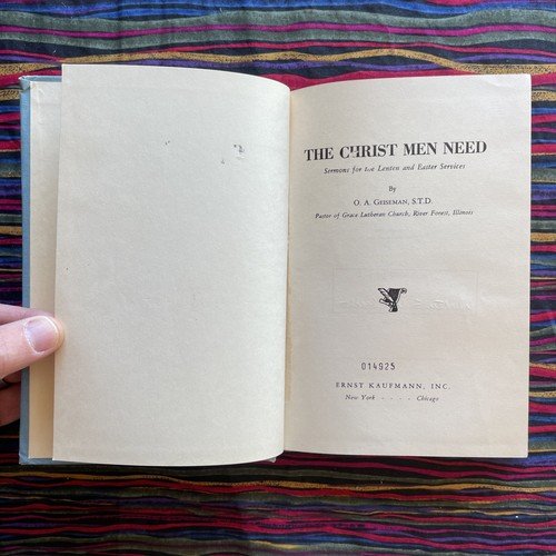 The Christ Men Need by OA Geiseman (1944, 1st Ex-Lib HC Easter & Lenten Sermons)