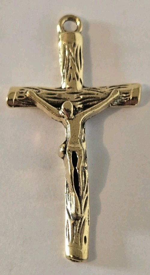Religious Cross Pendant Necklace Crucifix Stainless Steel Gold Tone Jesus Christ