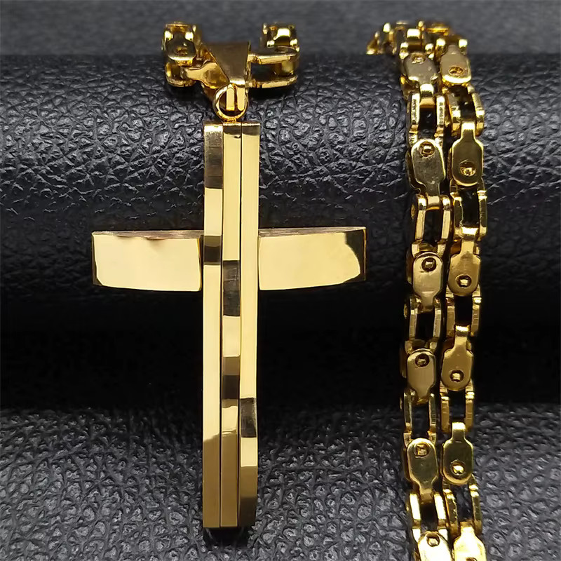 Religious Fashion Jewelry Christian Gold Color Cross Pendant Necklace 103