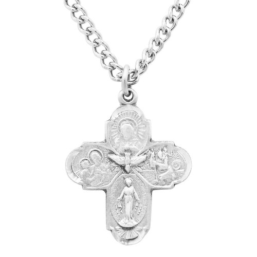 Religious Gift Traditional Catholic Small Four Way Medal Pendant Necklace, 24″