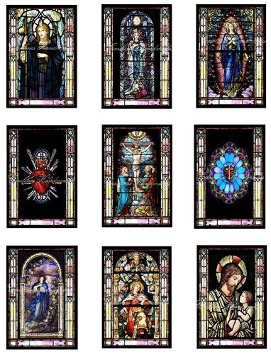 Religious Stained Glass A Designer MULTI-SIZE SET Cotton Fabric Quilt Blocks