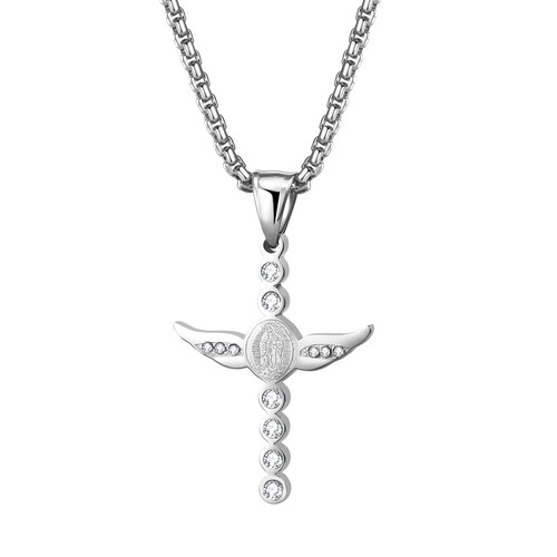 Religious Virgin Mary Cross Cubic Zirconia Pendant Necklace Virgen de Guadalupe