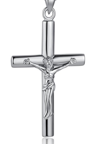 SILVER 20″ NECKLACE PENDANT religious CROSS JESUS CRUCIFIX men PRAY GOD female