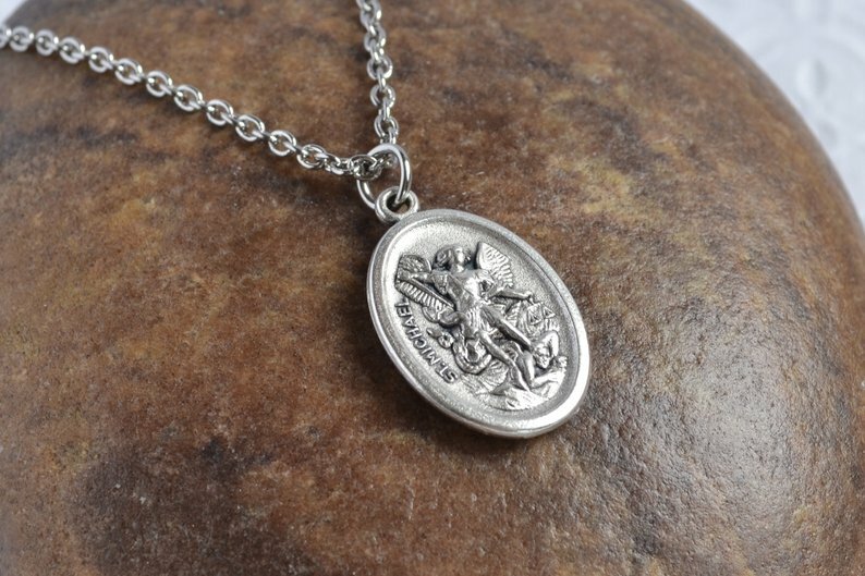 silver 24″ chain necklace SAINT MICHAEL PROTECT GUARDIAN ANGEL pendant RELIGIOUS