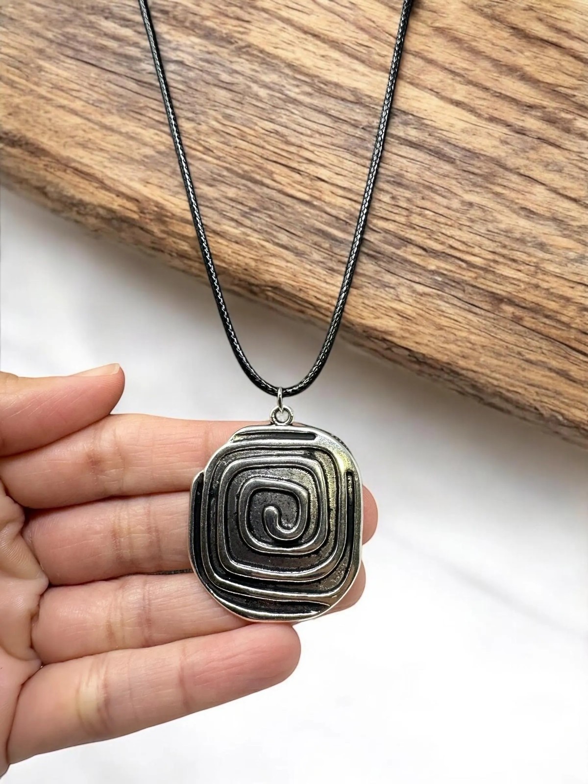 Silver Spiral Pendant Necklace – Greek Boho Unisex Y2K Jewelry, 16–18 in