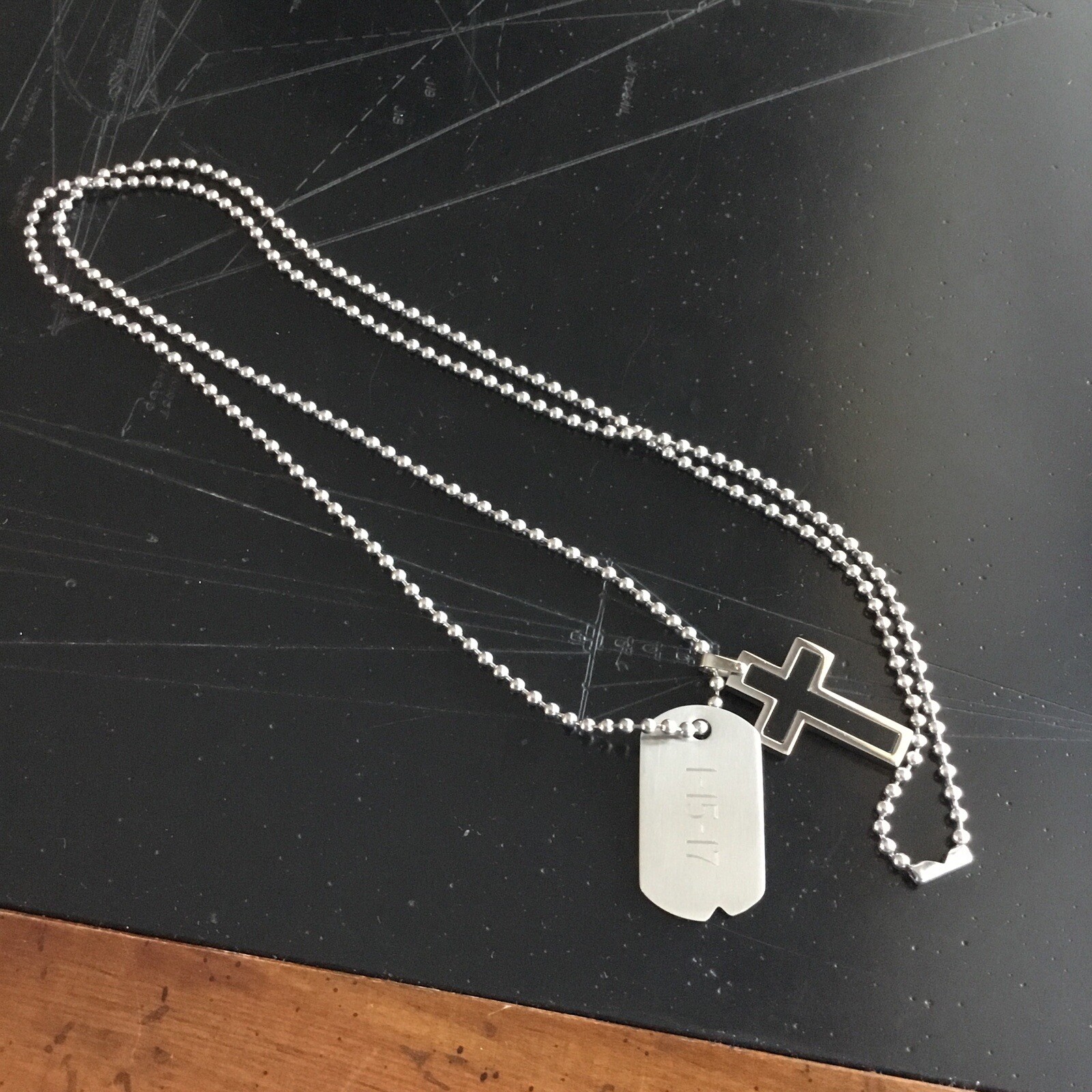Silver Tone Ball Chain Necklace With Cross Pendant & Matthew 23:11 Dog Tag EUC