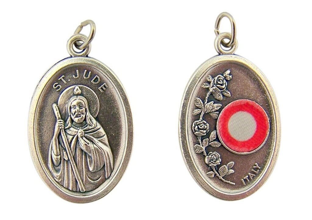 Silver Tone Catholic Saint Jude 3rd Class Piece of Cloth Relic Medal, 1 Inch