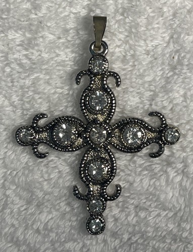Silver Tone Celtic Cross Charm with Clear Rhinestones Religious Pendant Jewelry