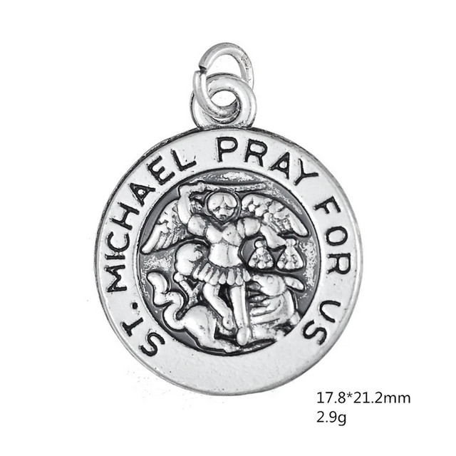 Small SAINT MICHAEL PRAY ARCHANGEL ANGEL Charm On 22″ 925 Silver Snake Necklace