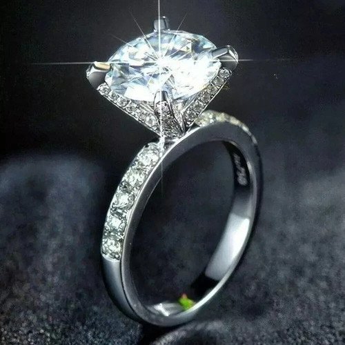 Solitaire Moissanite Engagement Ring Solid 14K White Gold 2 Carat Round Cut VVS1