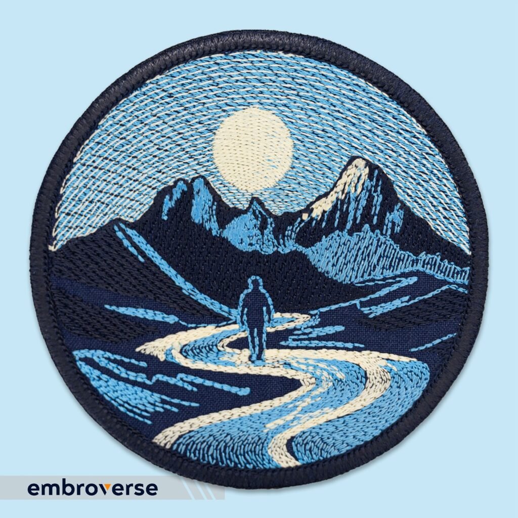 Spiritual Path Embroidered Patch, Moonlit Mountain Hiking Trail Iron On Patch