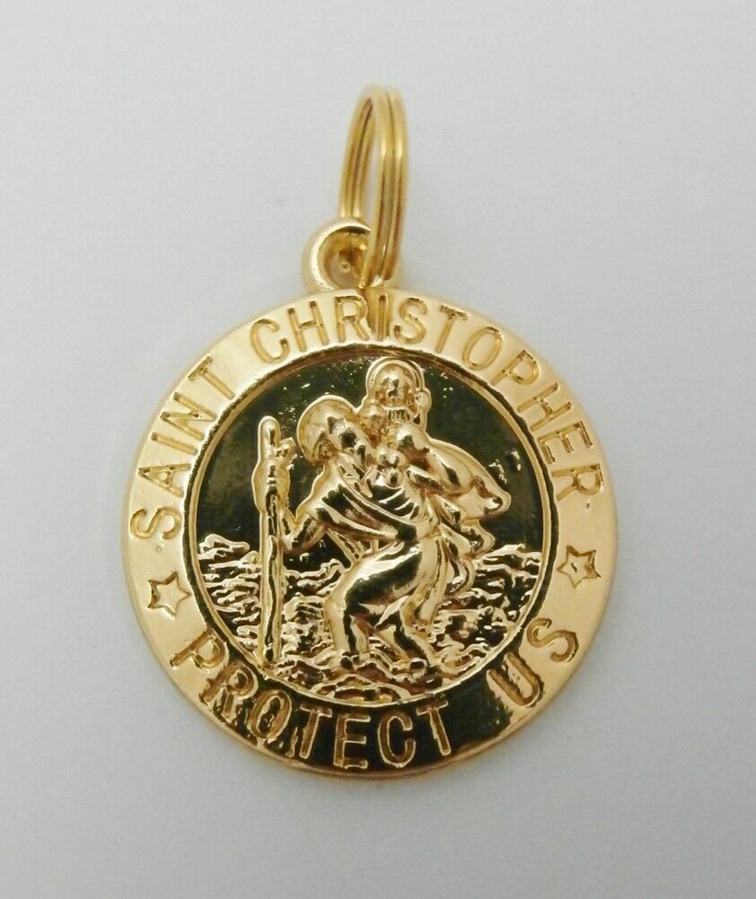 ST CHRISTOPHER PROTECT PRAY pendant GOLD plate 18K necklace 24″ chain women men
