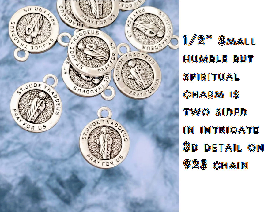 ST JUDE THADDEUS PRAY pendant charm 925 Sterling Silver 18″ snake chain necklace