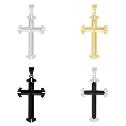 Stainless Steel Men’s Beveled Cross Pendant Religious Charm |Color Options