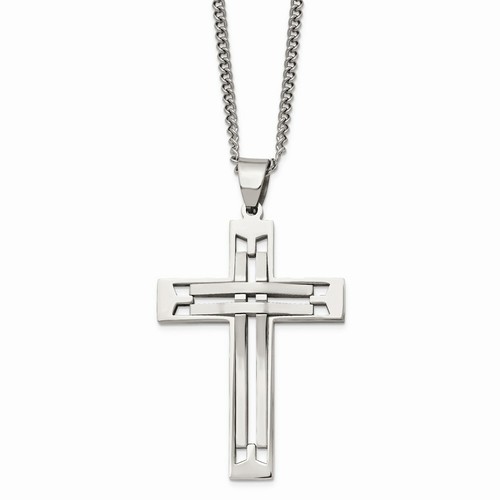 Stainless Steel Polished 24 inch Cross Necklace