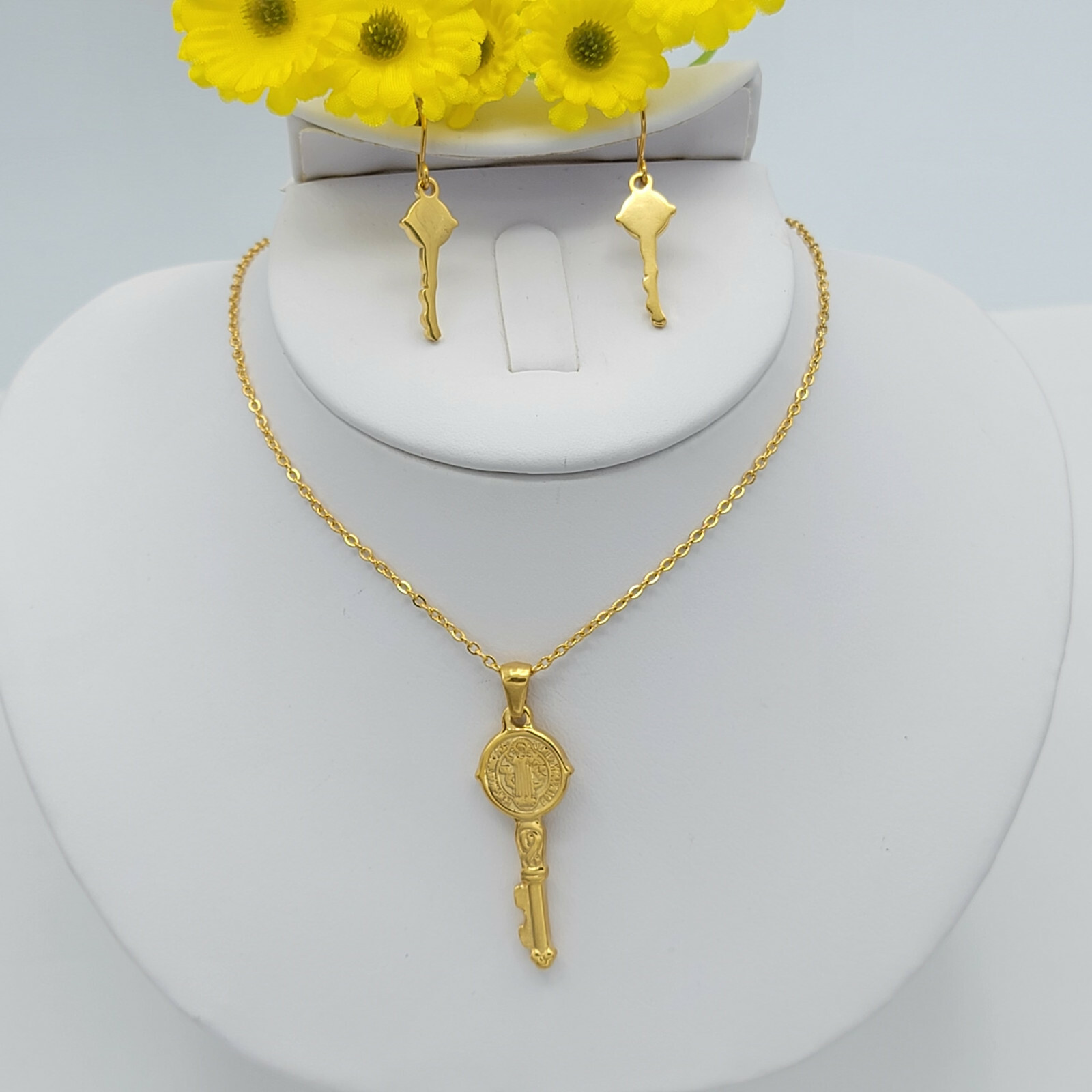 Stainless Steel Saint Benedict Double sided Key pendant Necklace, Free Earrings