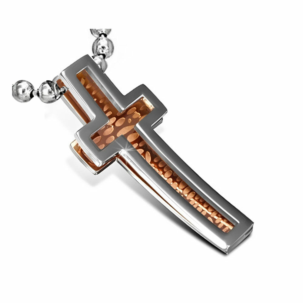 Stainless Steel Two-Tone Religious Cross Pendant Necklace