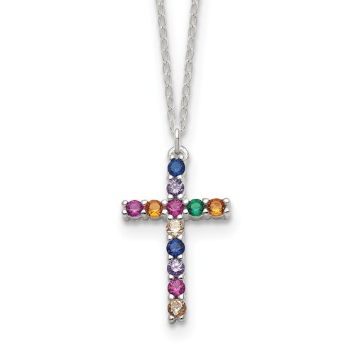Sterling Silver Rainbow CZ Cross Necklace for Men Women Religious Jewelry