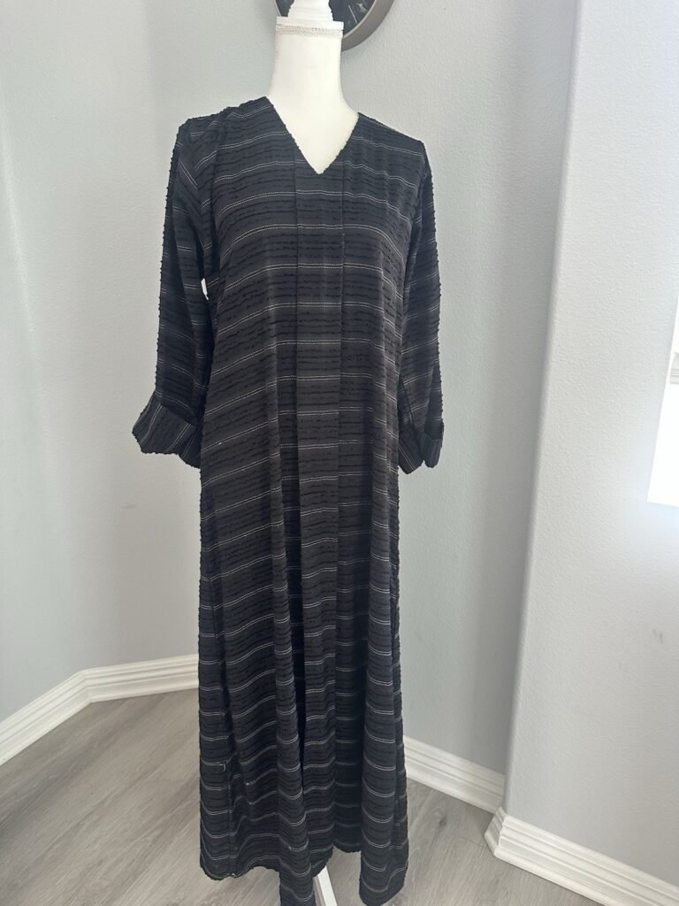 Black Abaya With White And Gray Stripes Muslim women modes clothing Size M Read More »