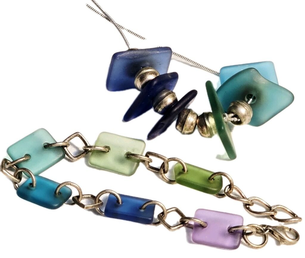 Genuine Sea Beach Glass Sterling Silver Bracelet JILLIAN VO & Necklace