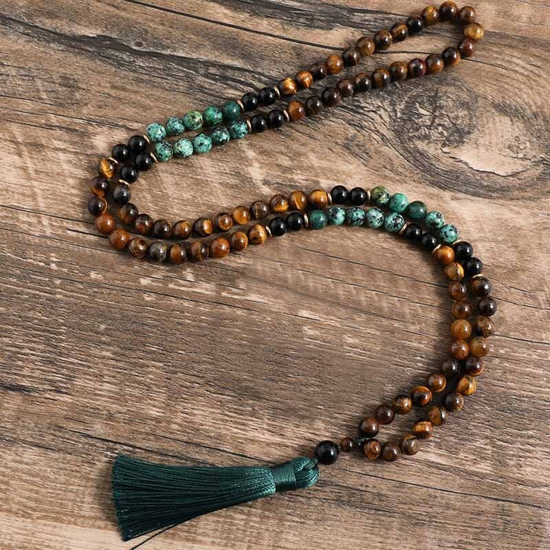 Tiger’s Eye Turquoise 108 Mala Bead Prayer Tassel Healing Yoga Necklace Bracelet