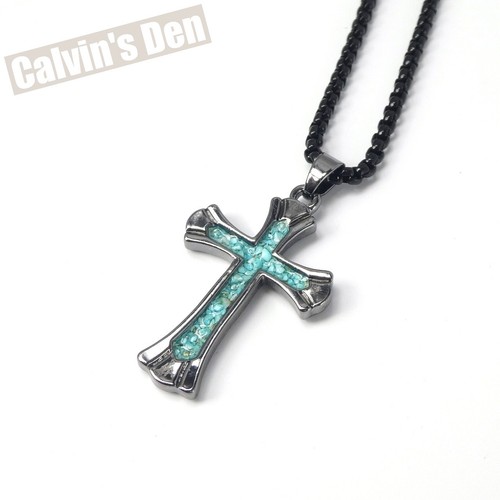 Turquoise Chip Inlay Flared Cross Pendant Necklace Classic