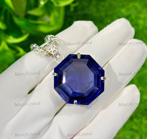Unique 85 Ct Purple Amethyst Glass GS Silver Pendent with 18″ Chain Gemstone
