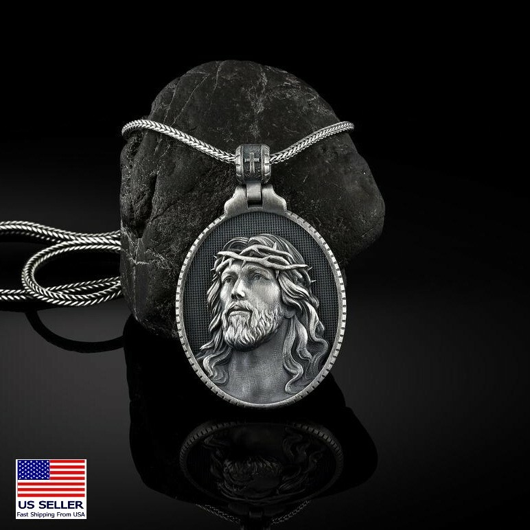 Unisex Retro Men Women Jesus Christ Holy Medal Cross Pendant Necklace 27″ Chain