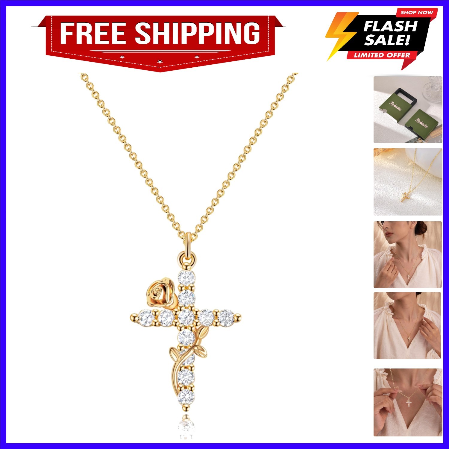 Upgraded Crown Cross Necklace for Women, 14K Gold Plated Crown Cross Pendant …