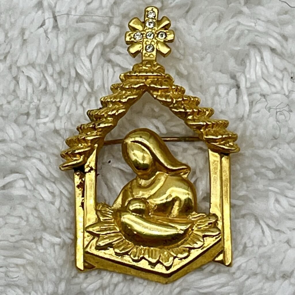 Vintage Butler Nativity Scene Brooch Mary Baby Jesus 2″
