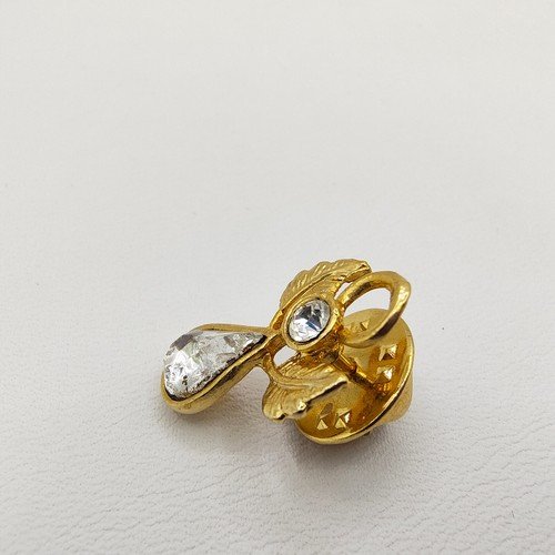 Vintage Guardian Angel Lapel Pin Gold Tone Clear Rhinestone Religious Icon 1/2″