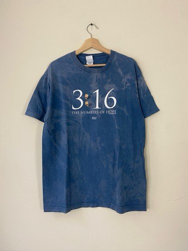 Vintage John 3:16 Bible Verse Religious Cross Graphic Art Navy Tye Dye Tee – L