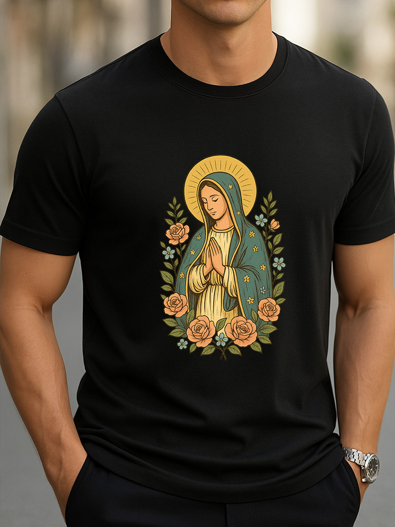 Virgin Mary Graphic T-Shirt Our Lady of Guadalupe Floral Religious Tee