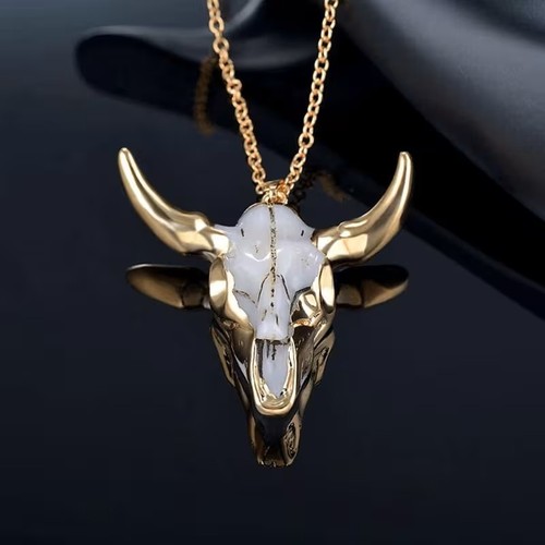 Western Bull Skull Necklace Longhorn Cow Pendant Boho Ranch Jewelry Gift