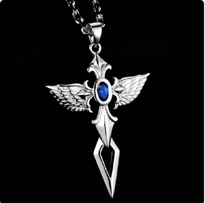 WING BLUE CRYSTAL SPEAR CROSS ARROW Pendant On 22″ 925 Sterling Silver Necklace