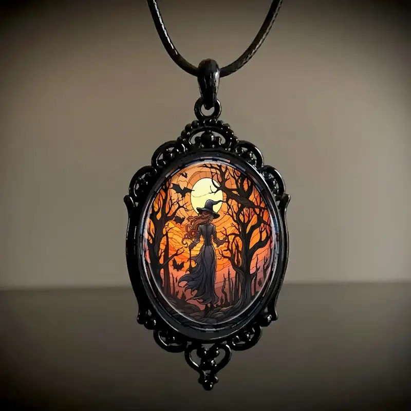 Witch Gothic Pendant Jewelry Vintage Black Magical Magician Necklace A