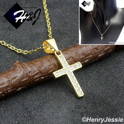WOMEN 925 STERLING SILVER ICY CZ GOLD PLATED SMALL CROSS PENDANT NECKLACE*WGN19