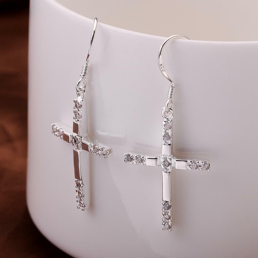 Womens 925 Sterling Silver CZ Crystal Religious Cross Drop Dangle Vogue Earrings