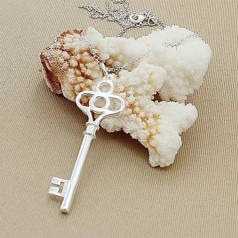 Womens 925 Sterling Silver Key Pendant 18″ Rolo Link Chain Necklace #N265